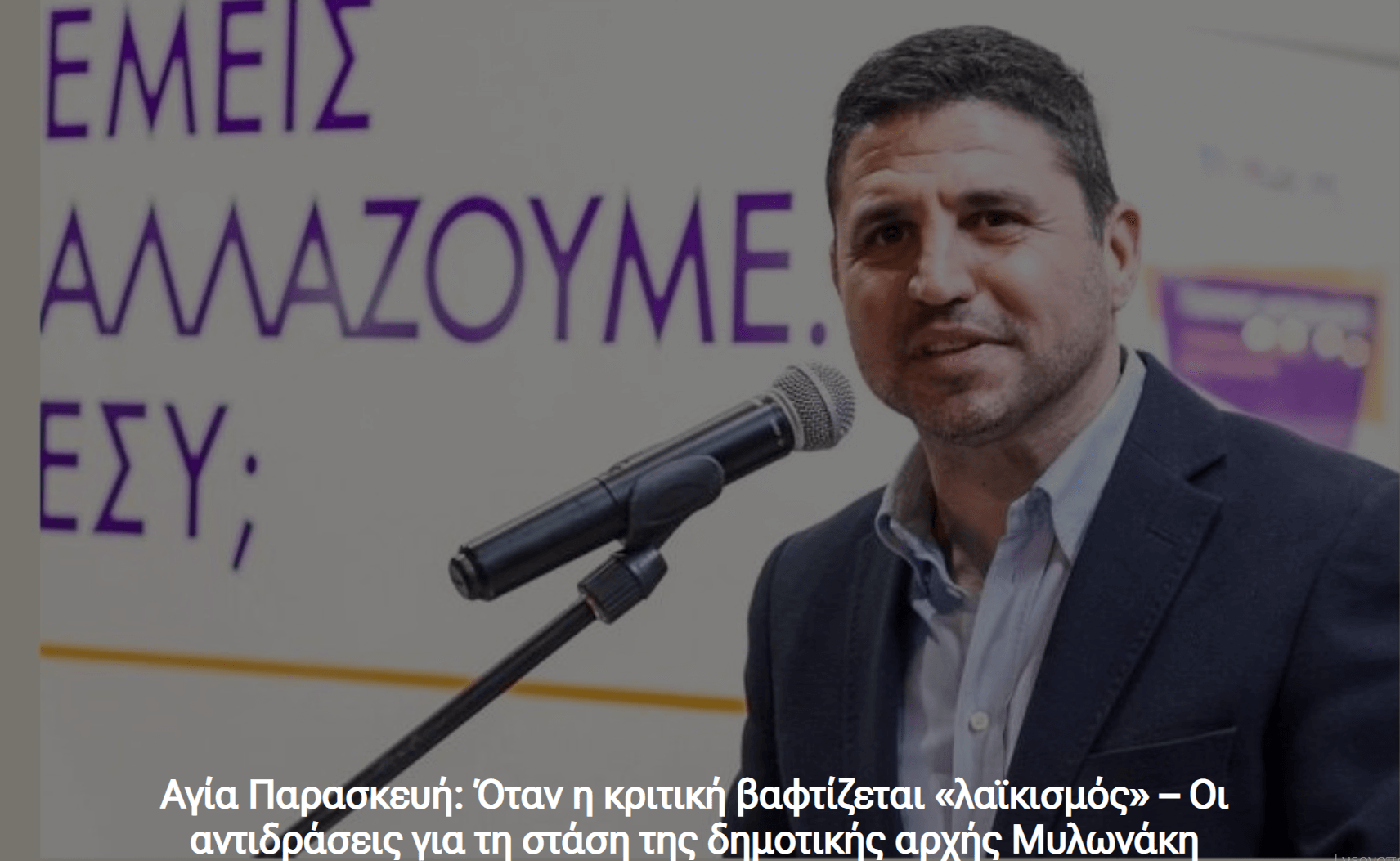 Αiretos.gr για Αγία Παρασκευή: Όταν η κριτική βαφτίζεται «λαϊκισμός» – Οι αντιδράσεις για τη στάση της δημοτικής αρχής Μυλωνάκη