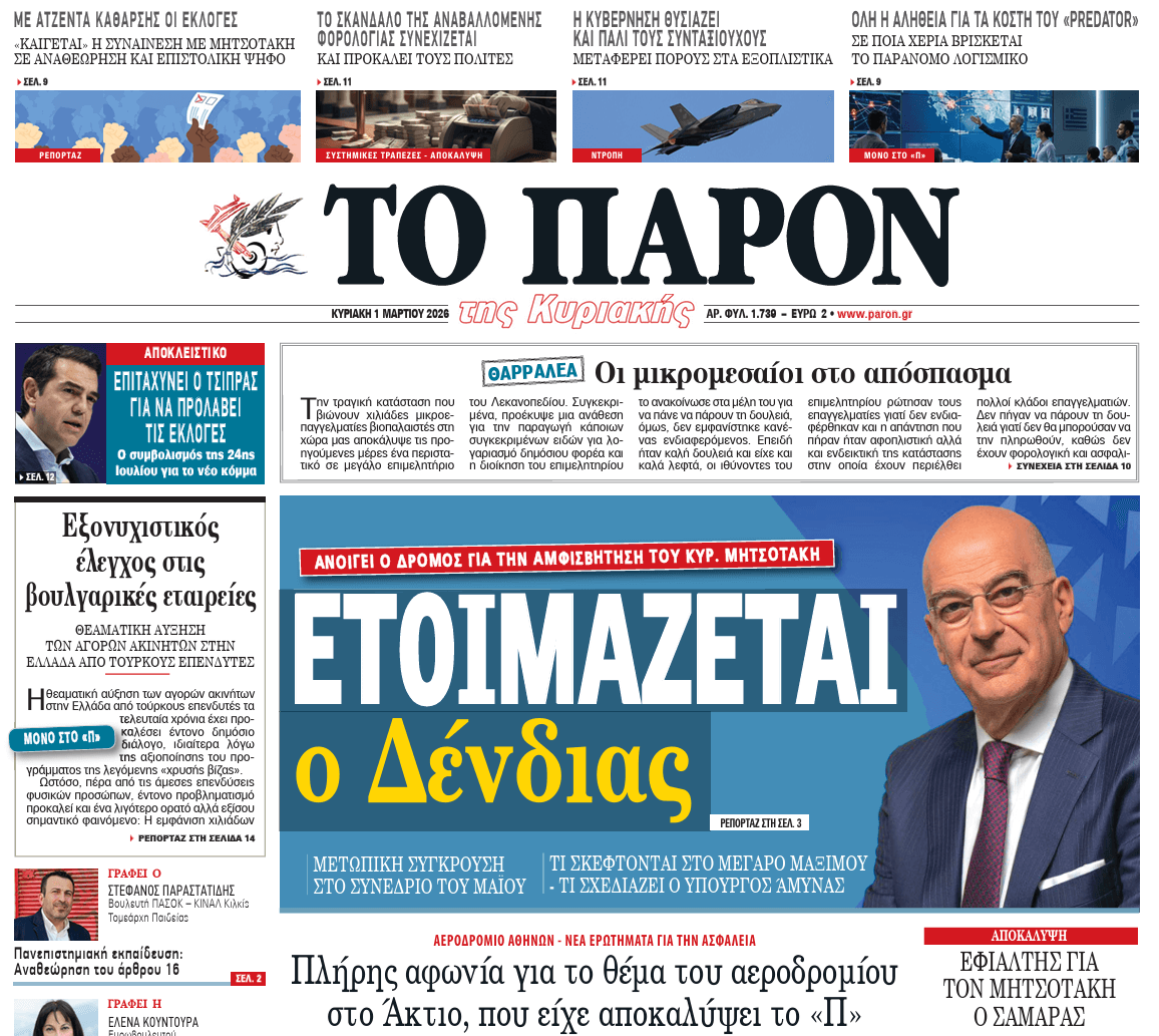 Τι θα διαβάσετε αυτή την Κυριακή στο «ΠΑΡΟΝ»
