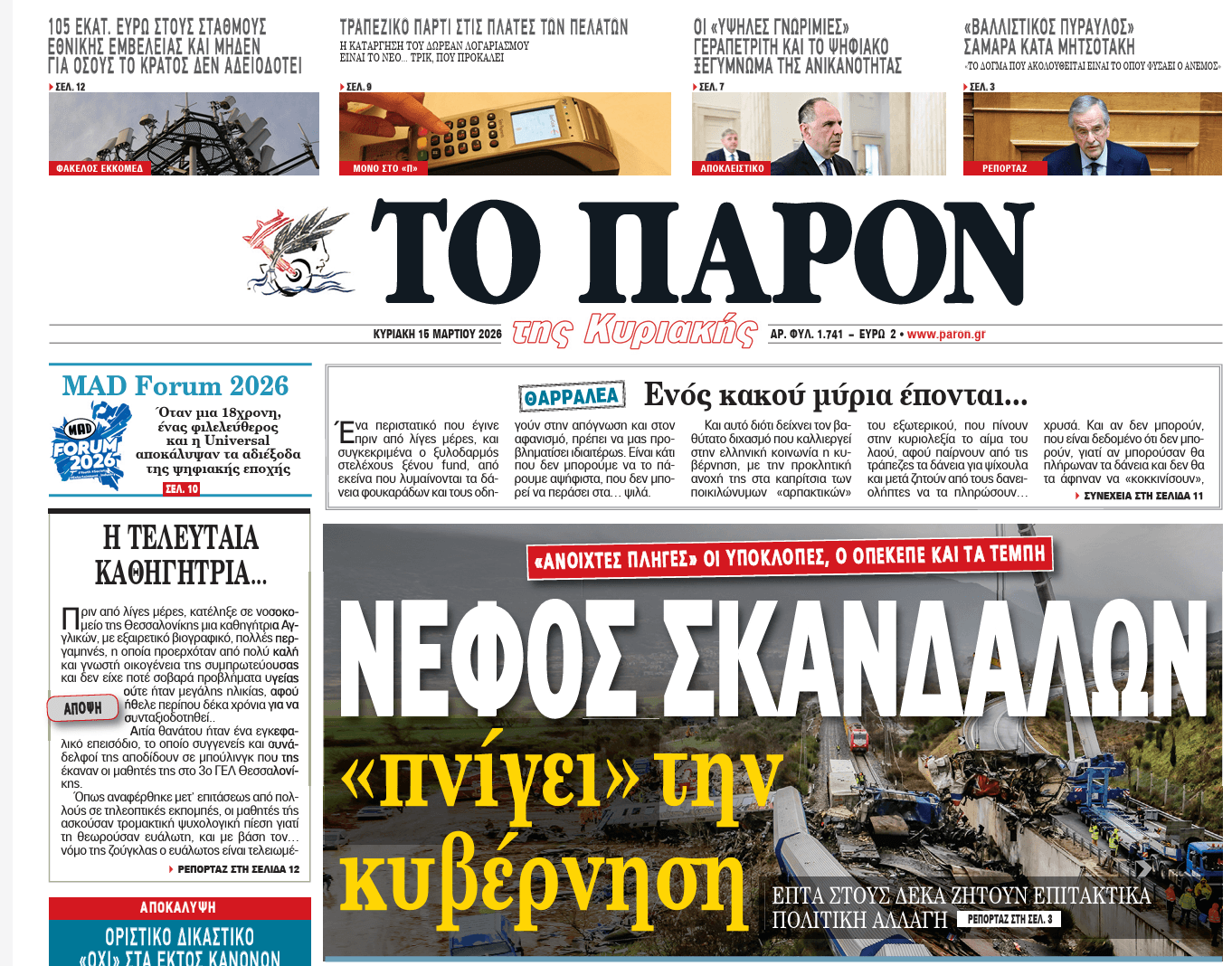 Τι θα διαβάσετε αυτή την Κυριακή στο «ΠΑΡΟΝ»