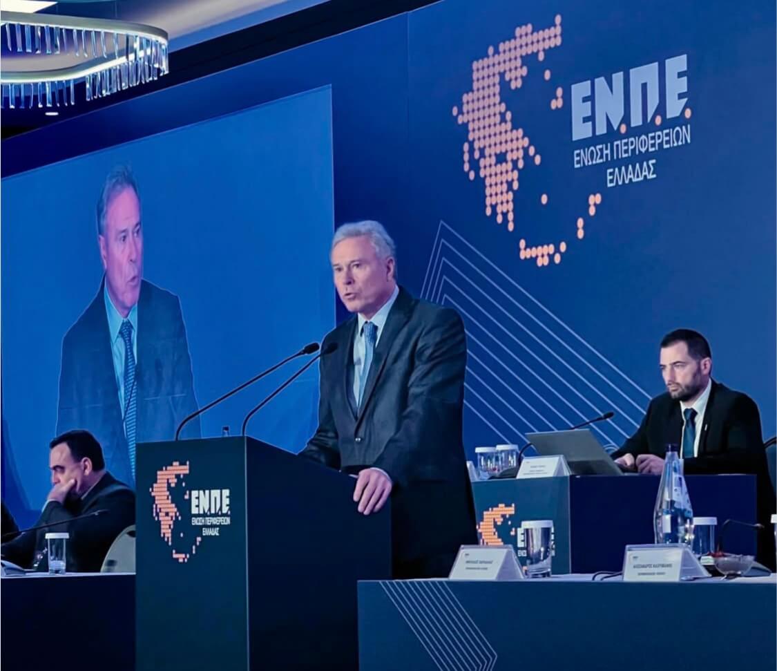 Στην τοποθέτηση του στη Συνέλευση, αφού ευχαρίστησε τον Πρόεδρο της ΕΝ.ΠΕ κ. Γεώργιο Χατζημάρκο και το Διοικητικό Συμβούλιο για την πρόσκληση, αναφέρθηκε στο τι πέτυχε η ΕΝ.ΠΕ. επί της θητείας του ως Προέδρου, αλλά και στις προκλήσεις που καλείται να αντιμετωπίσει ο θεσμός της Τοπικής Αυτοδιοίκησης σήμερα και στο μέλλον.