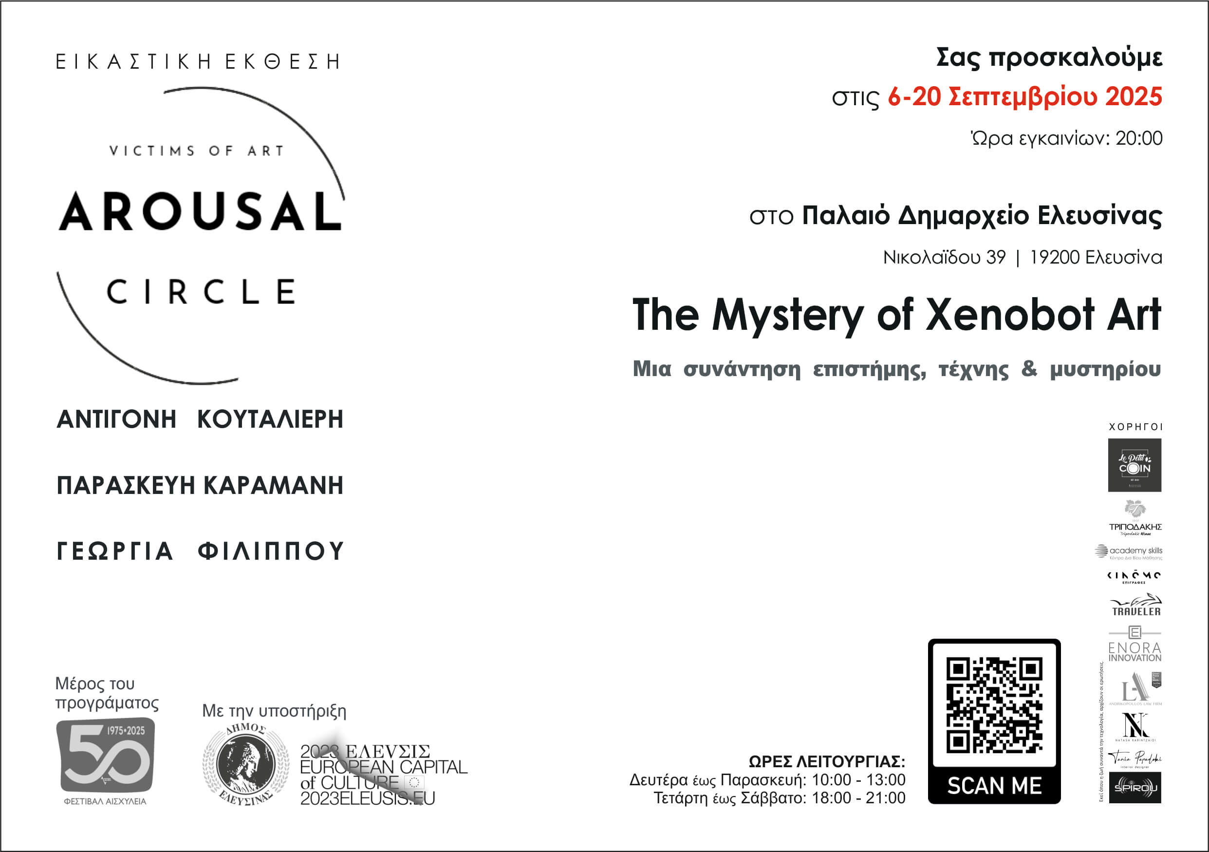 Εγκαίνια: Σάββατο 6 Σεπτεμβρίου, ώρα 20:00