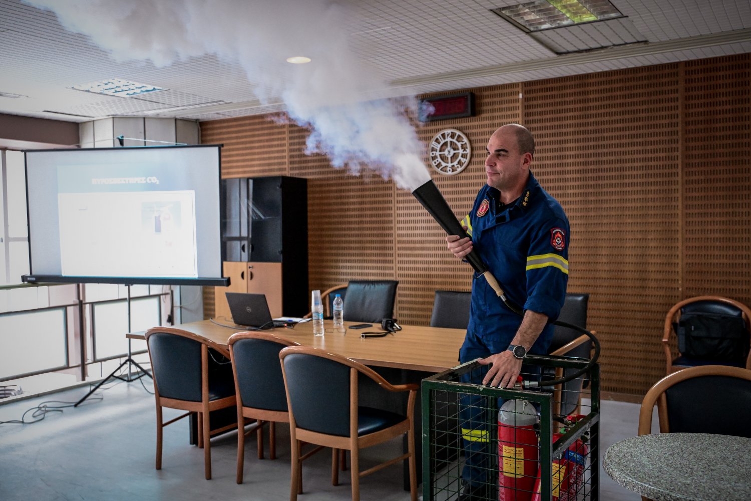 Όπως εξήγησε μάλιστα με βάση τα στοιχεία στην Ελλάδα η δεύτερη αιτία βίαιου θανάτου εν καιρώ ειρήνης είναι η πυρκαγιά καταδεικνύοντας με αυτόν τον τρόπο πόσο αναγκαίο είναι σε μια δημόσια υπηρεσίας όπως το εφετείο της Αθήνας όπου σε καθημερινή βάση εισέρχονται περίπου τρεις με πέντε χιλιάδες πολίτες και εργάζονται περισσότεροι από πεντακόσιους δικαστές και δικαστικούς υπαλλήλους είναι χρήσιμο να υπάρχει η αναγκαία πυροπροστασία αλλά και η γνώση για την αντιμετώπιση ενδεχομενμοθβτετοαου κινδύνου.
