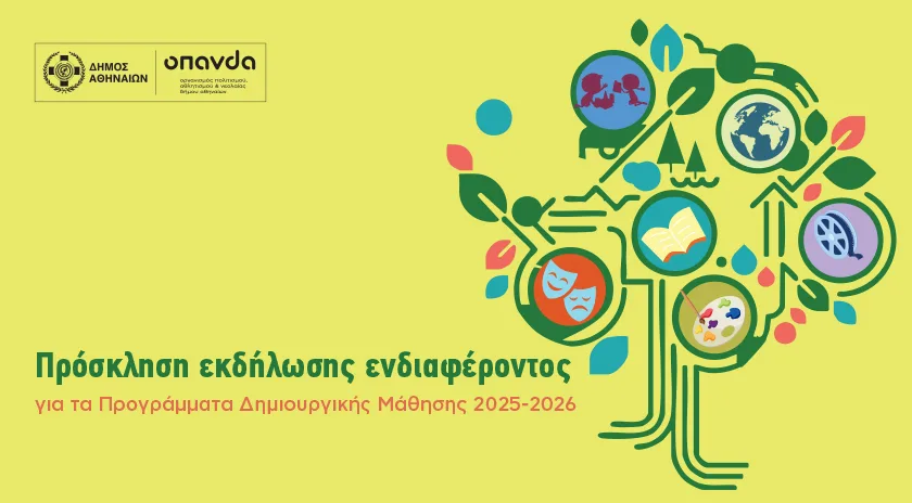 Πρόσκληση εκδήλωσης ενδιαφέροντος για την υλοποίηση σεμιναρίων και εργαστήριων στα Κέντρα Δημιουργικής Μάθησης του Δήμου Αθηναίων