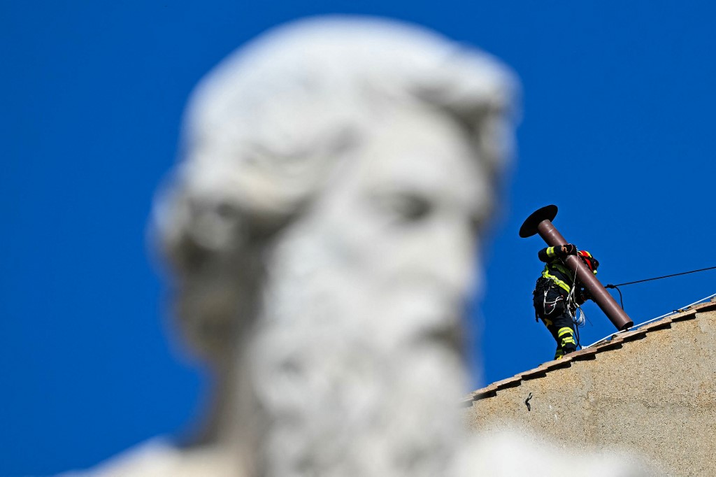 Πέντε ημέρες πριν οι καρδινάλιοι συγκεντρωθούν για το κονκλάβιο, οι πυροσβέστες εγκατέστησαν την Παρασκευή την καμινάδα στην κορυφή της Καπέλα Σιξτίνα, η οποία θα βγάλει λευκό καπνό για να σηματοδοτήσει την εκλογή του νέου Πάπα.