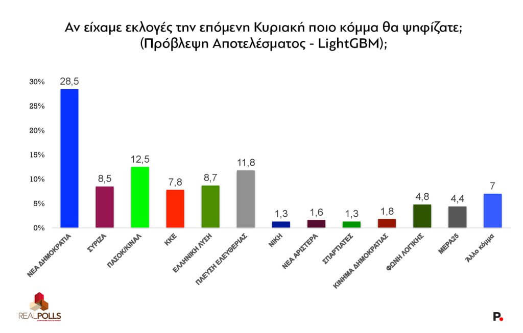 Παράλληλα, παραμένει ρευστή η δημοσκοπική εικόνα στην αντιπολίτευση, με το ΠΑΣΟΚ να κινείται στο 9,4%, την Πλεύση Ελευθερίας στο 9,2%, την Ελληνική Λύση στο 7,1%, τον ΣΥΡΙΖΑ στο 6,5% και το ΚΚΕ στο 6,4%. Αξίζει να σημειωθεί ότι είναι αρκετά υψηλό το ποσοστό των αναποφάσιστων (16,1%).